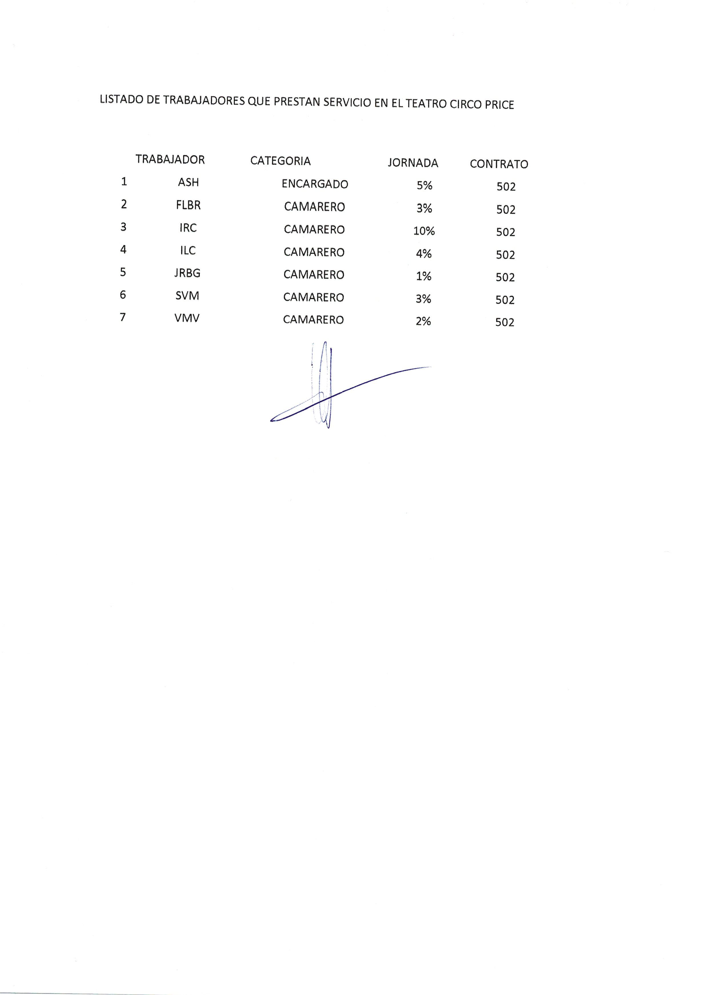 Servicio auxiliar de barras y camareros, a prestar en el Teatro Circo Price de Madrid